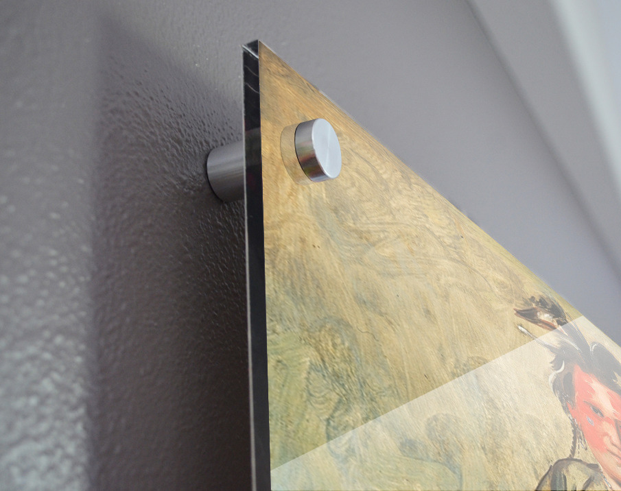 Printed to the edge - Ready to hang - provided with 4 premium polished aluminum stand off ( wall screws and mounting hardware provided ) We suggest a thicker 3/16" acrylic for any size over 42 inches to guarantee a straight acrylic, without curvature
