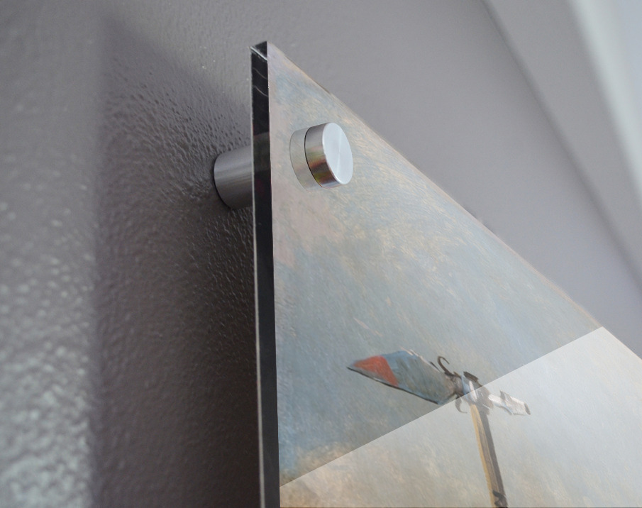 Printed to the edge - Ready to hang - provided with 4 premium polished aluminum stand off ( wall screws and mounting hardware provided )
