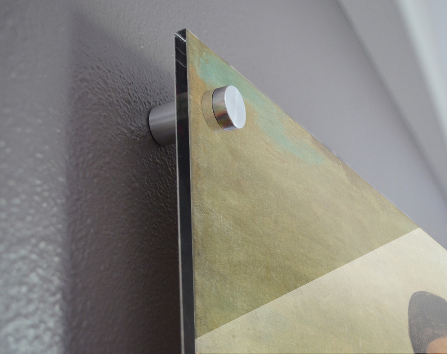 Printed to the edge - Ready to hang - provided with 4 premium polished aluminum stand off ( wall screws and mounting hardware provided ) We suggest a thicker 3/16" acrylic for any size over 42 inches to guarantee a straight acrylic, without curvature