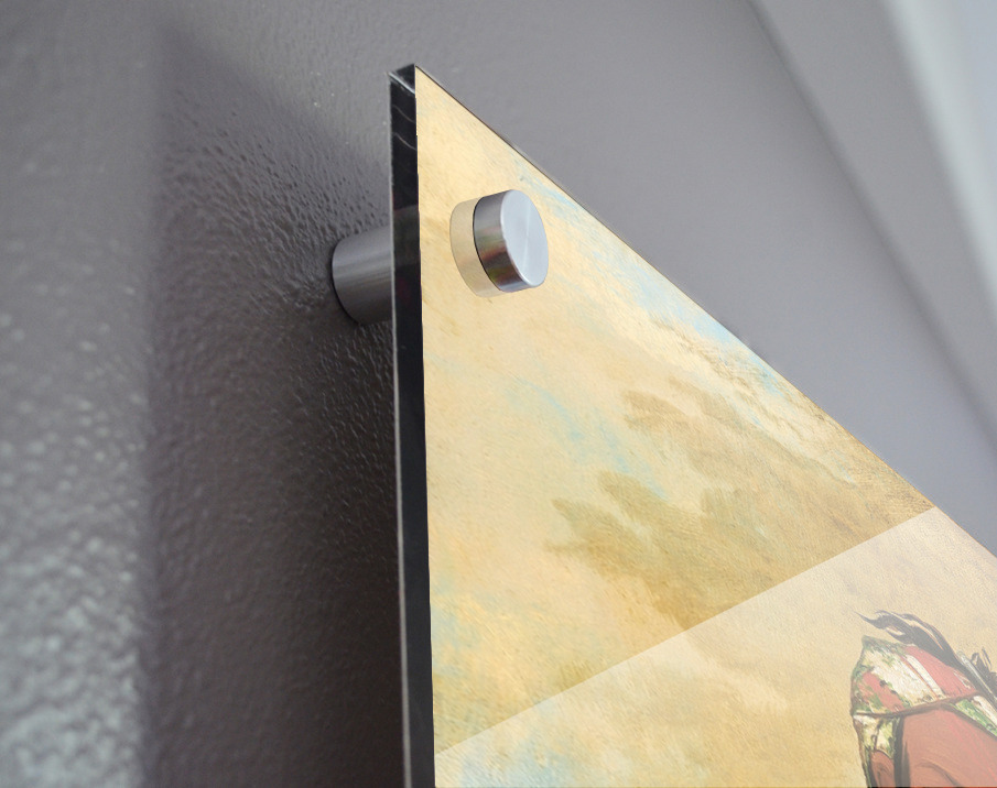 Printed to the edge - Ready to hang - provided with 4 premium polished aluminum stand off ( wall screws and mounting hardware provided ) We suggest a thicker 3/16" acrylic for any size over 42 inches to guarantee a straight acrylic, without curvature