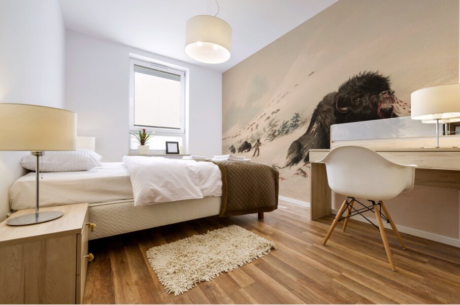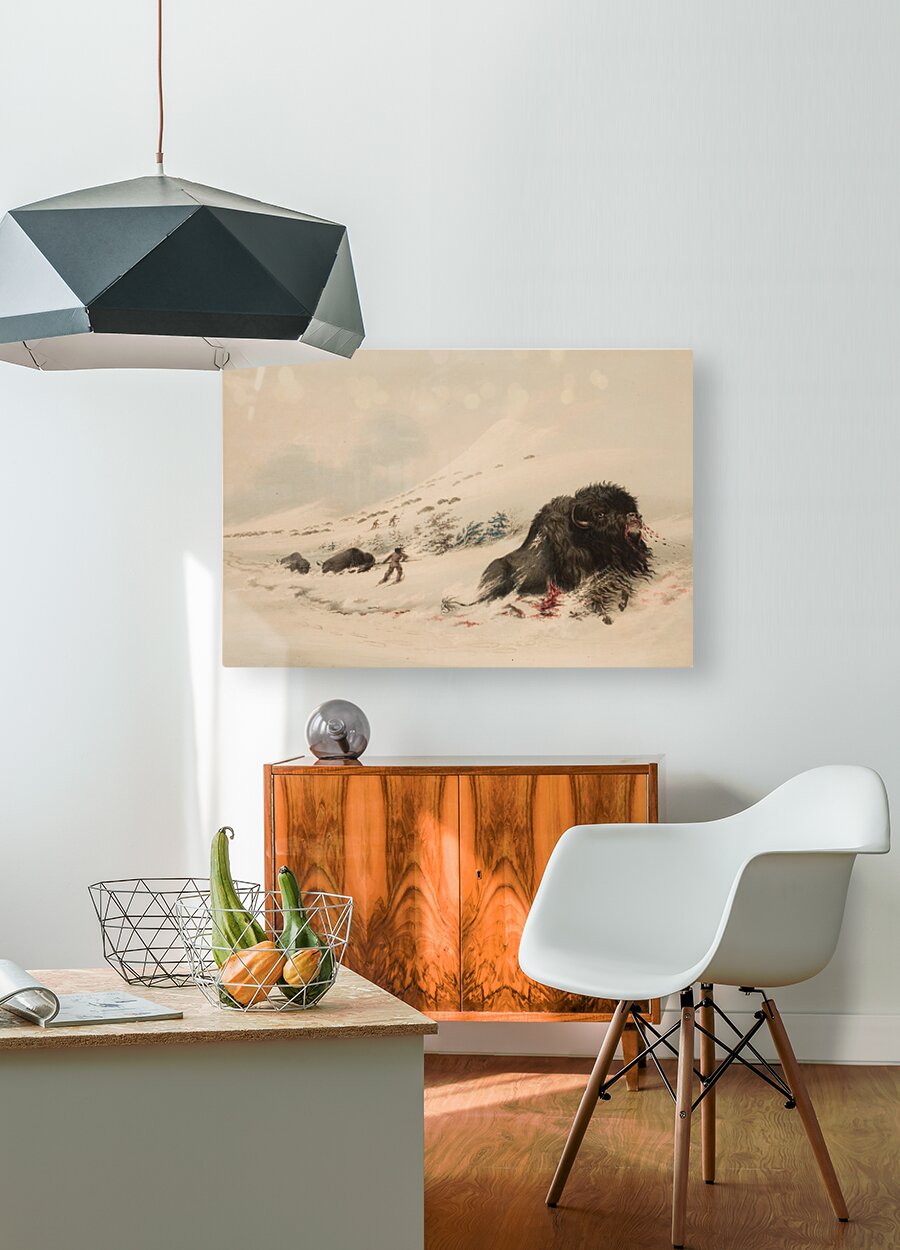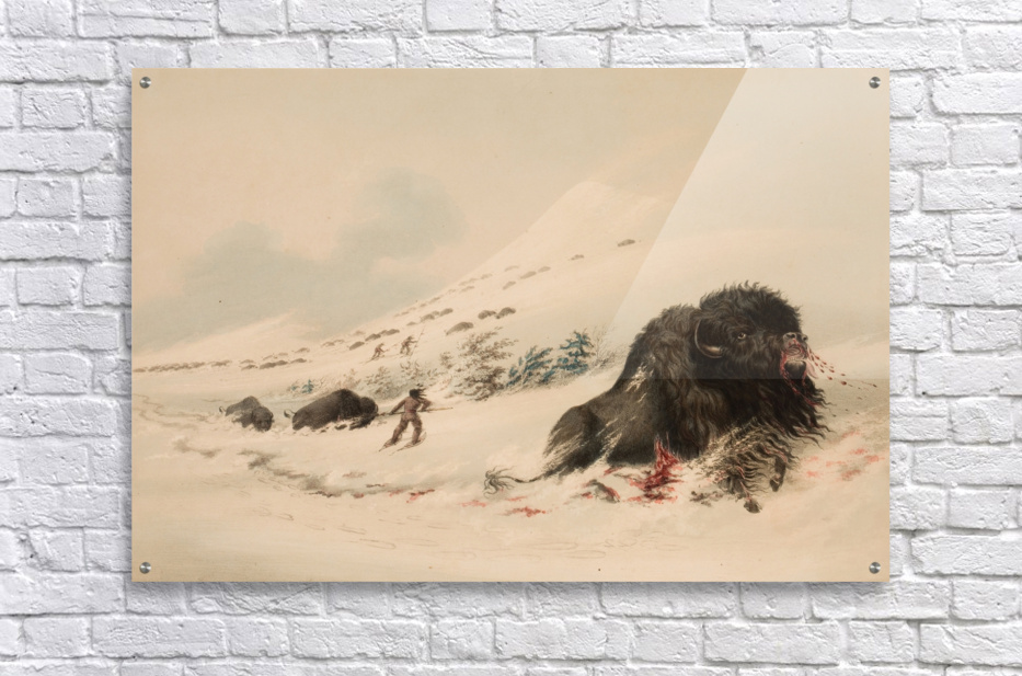 Buffalo Bull in Snow Drift 1844  HD Metal print with Floating Frame on Back