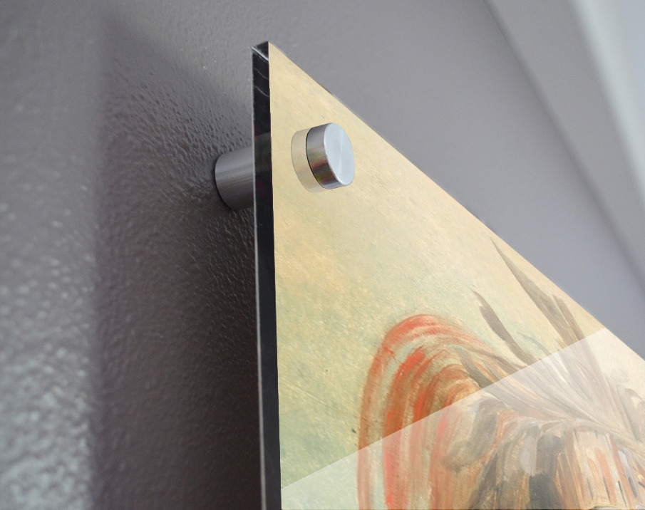 Printed to the edge - Ready to hang - provided with 4 premium polished aluminum stand off ( wall screws and mounting hardware provided )