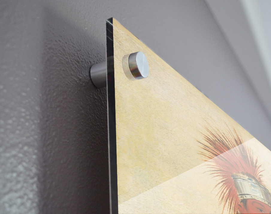 Printed to the edge - Ready to hang - provided with 4 premium polished aluminum stand off ( wall screws and mounting hardware provided ) We suggest a thicker 3/16" acrylic for any size over 42 inches to guarantee a straight acrylic, without curvature