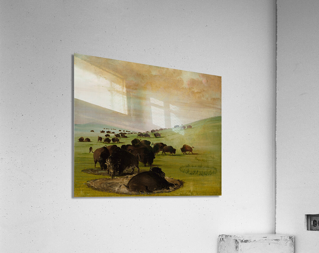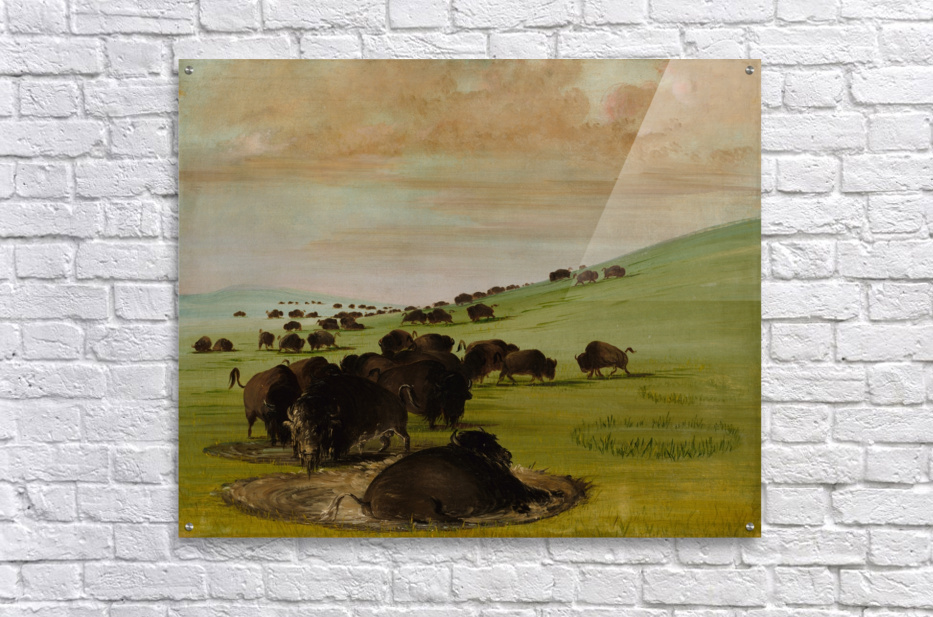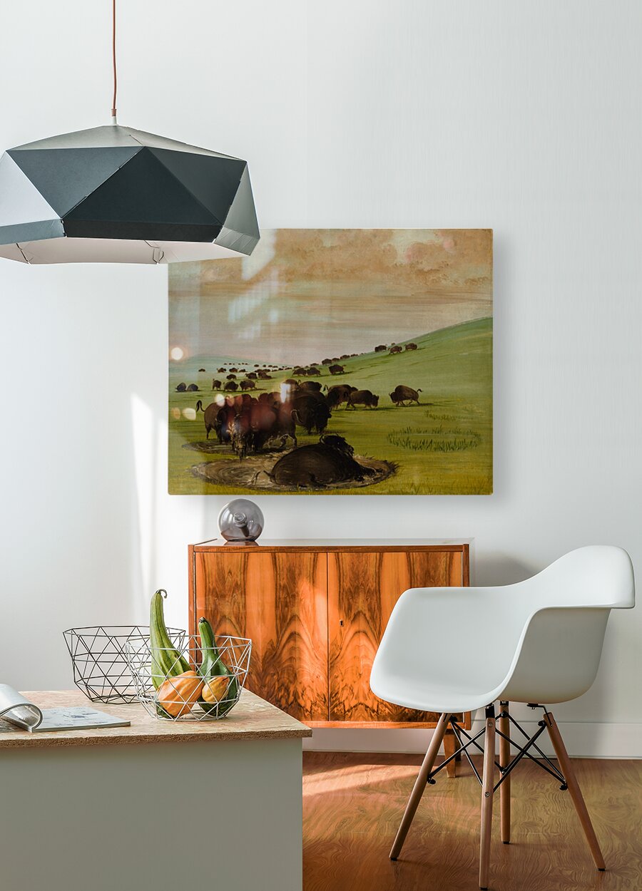 Buffalo Bulls in a Wallow 1837-1839  Wood print