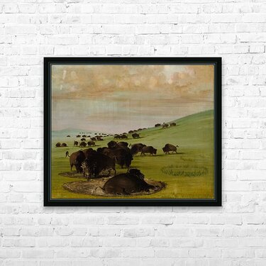 Buffalo Bulls in a Wallow 1837-1839 Picture Frame Printing