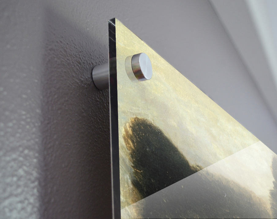 Printed to the edge - Ready to hang - provided with 4 premium polished aluminum stand off ( wall screws and mounting hardware provided ) We suggest a thicker 3/16" acrylic for any size over 42 inches to guarantee a straight acrylic, without curvature