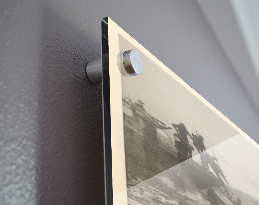 Printed to the edge - Ready to hang - provided with 4 premium polished aluminum stand off ( wall screws and mounting hardware provided ) We suggest a thicker 3/16" acrylic for any size over 42 inches to guarantee a straight acrylic, without curvature