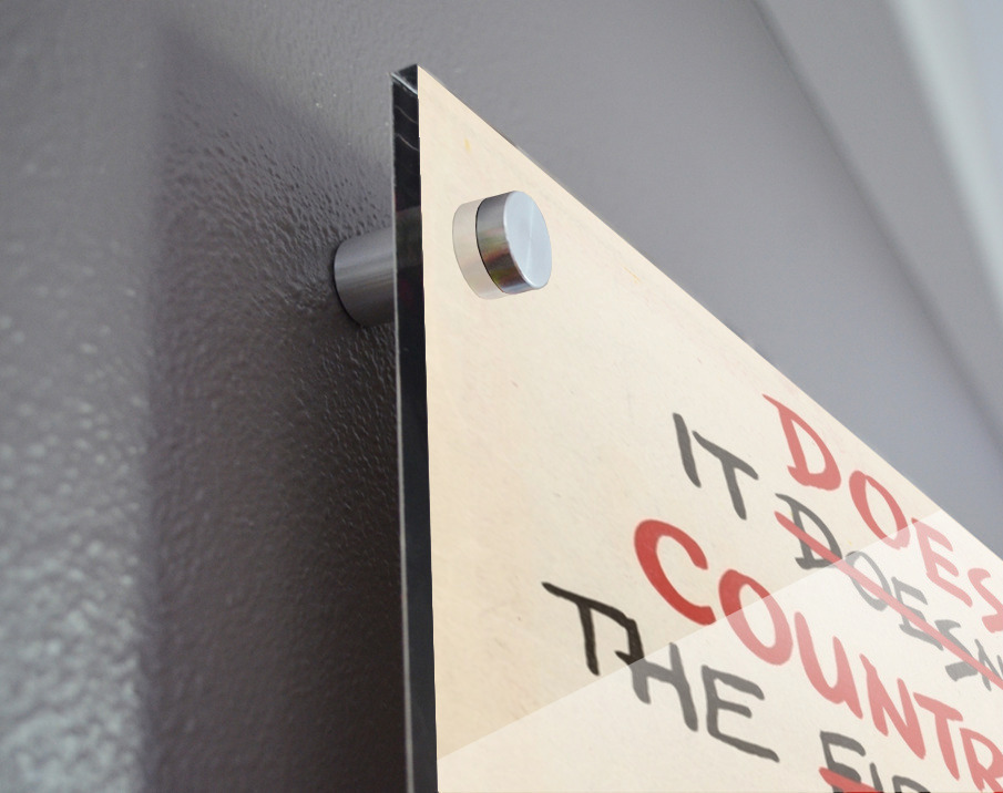 Printed to the edge - Ready to hang - provided with 4 premium polished aluminum stand off ( wall screws and mounting hardware provided ) We suggest a thicker 3/16" acrylic for any size over 42 inches to guarantee a straight acrylic, without curvature