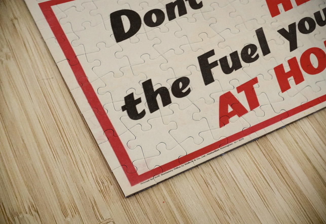 Get this artwork "Don’t Waste Here – The Fuel You Save at Home" in a framed print.