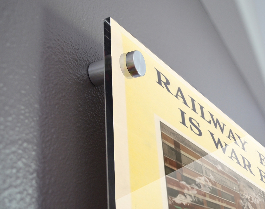 Printed to the edge - Ready to hang - provided with 4 premium polished aluminum stand off ( wall screws and mounting hardware provided ) We suggest a thicker 3/16" acrylic for any size over 42 inches to guarantee a straight acrylic, without curvature