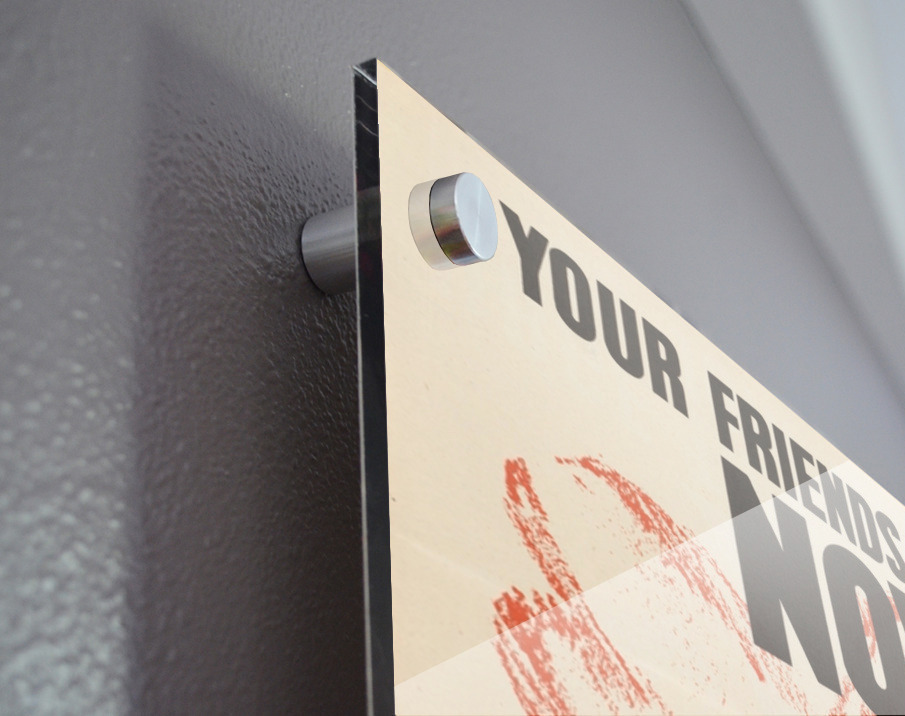 Printed to the edge - Ready to hang - provided with 4 premium polished aluminum stand off ( wall screws and mounting hardware provided ) We suggest a thicker 3/16" acrylic for any size over 42 inches to guarantee a straight acrylic, without curvature