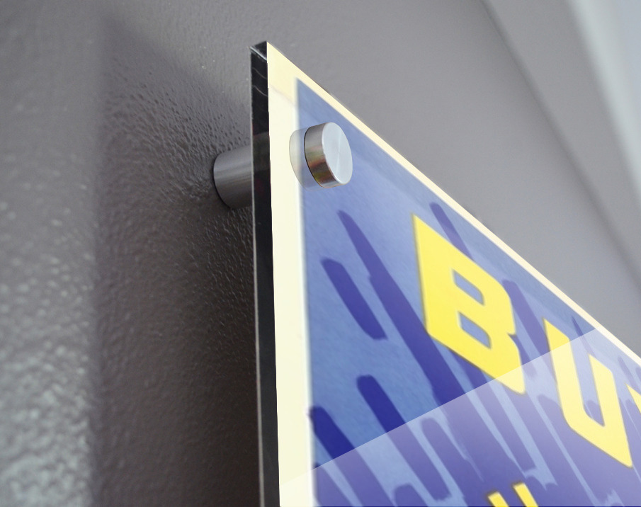 Printed to the edge - Ready to hang - provided with 4 premium polished aluminum stand off ( wall screws and mounting hardware provided ) We suggest a thicker 3/16" acrylic for any size over 42 inches to guarantee a straight acrylic, without curvature