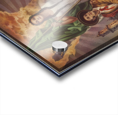 Printed to the edge - Ready to hang - provided with 4 premium polished aluminum stand off ( wall screws and mounting hardware provided )