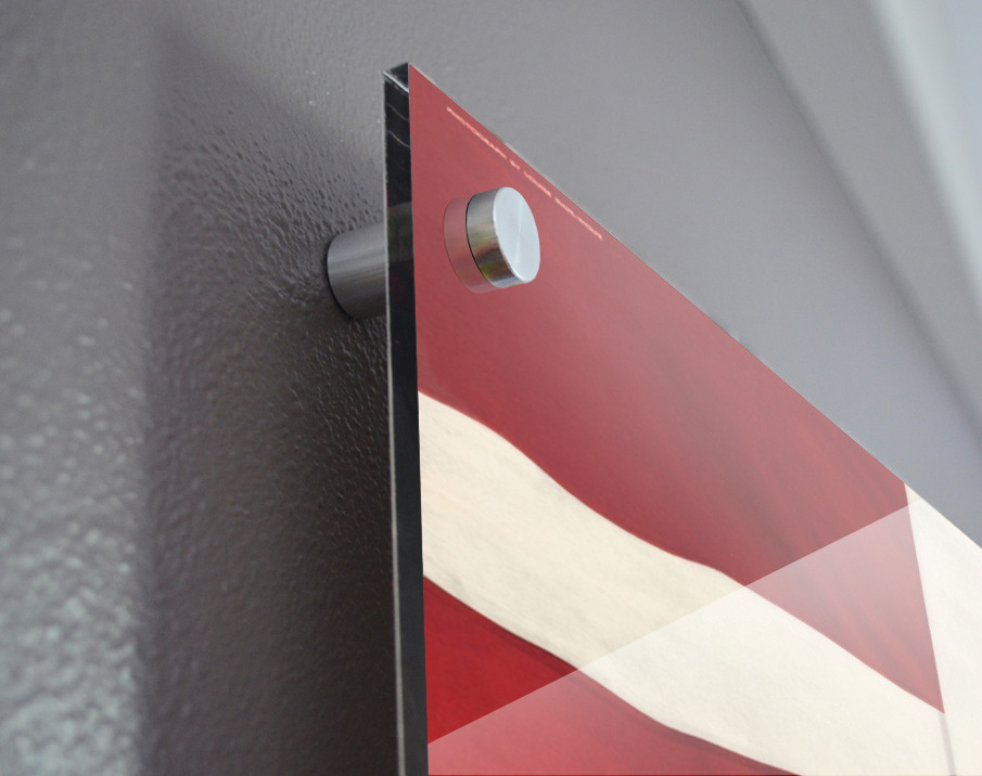 Printed to the edge - Ready to hang - provided with 4 premium polished aluminum stand off ( wall screws and mounting hardware provided ) We suggest a thicker 3/16" acrylic for any size over 42 inches to guarantee a straight acrylic, without curvature