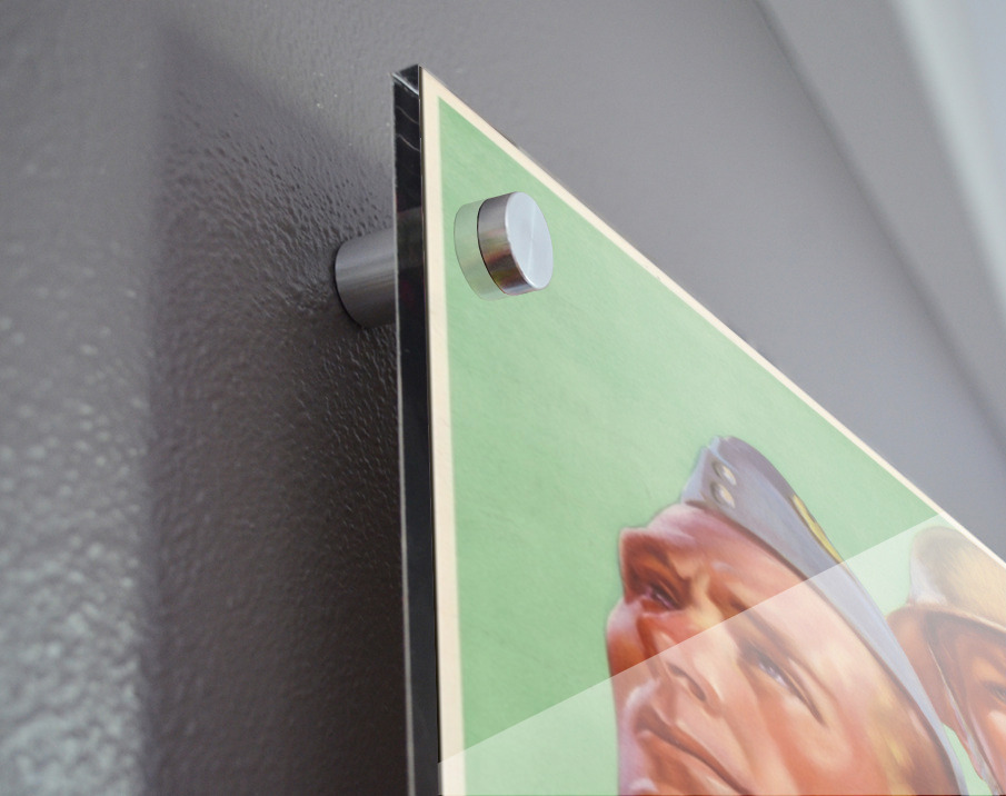Printed to the edge - Ready to hang - provided with 4 premium polished aluminum stand off ( wall screws and mounting hardware provided )
