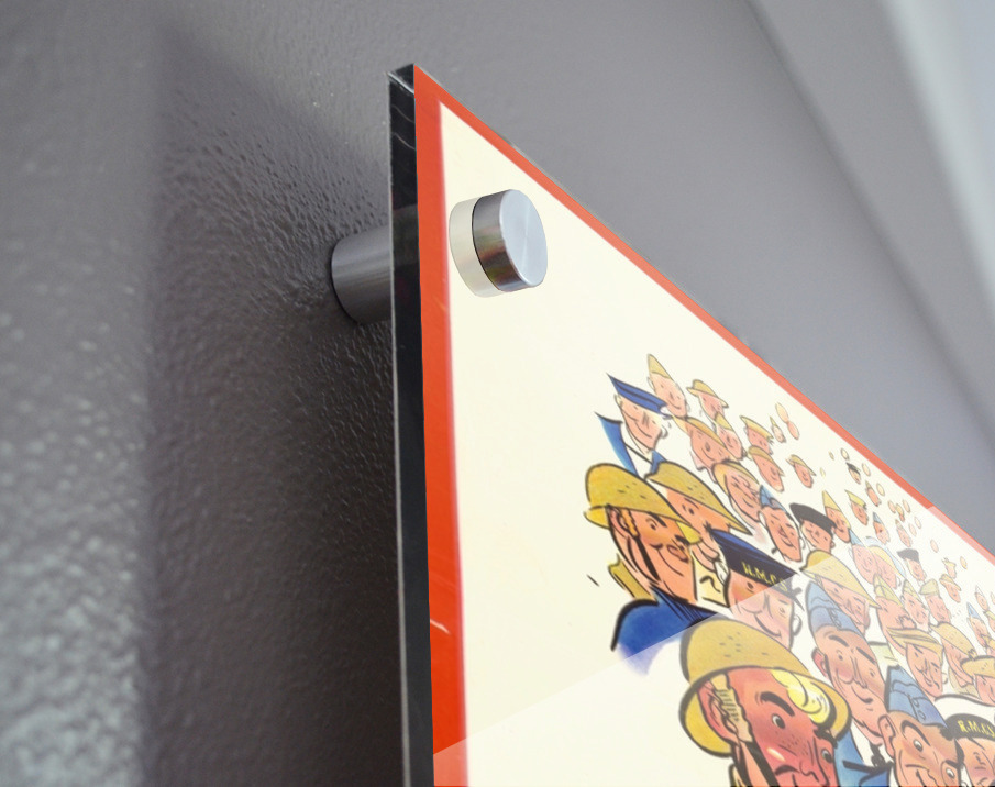 Printed to the edge - Ready to hang - provided with 4 premium polished aluminum stand off ( wall screws and mounting hardware provided ) We suggest a thicker 3/16" acrylic for any size over 42 inches to guarantee a straight acrylic, without curvature