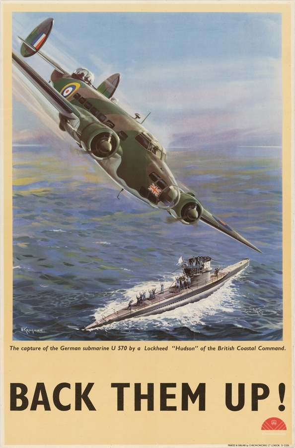 Get this artwork "The Capture of the German Submarine U 570 by a Lockheed ‘Hudson’ of the British Coastal Command – Back Them Up!" in a framed print.