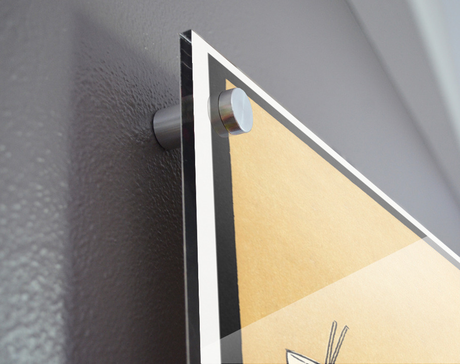 Printed to the edge - Ready to hang - provided with 4 premium polished aluminum stand off ( wall screws and mounting hardware provided ) We suggest a thicker 3/16" acrylic for any size over 42 inches to guarantee a straight acrylic, without curvature