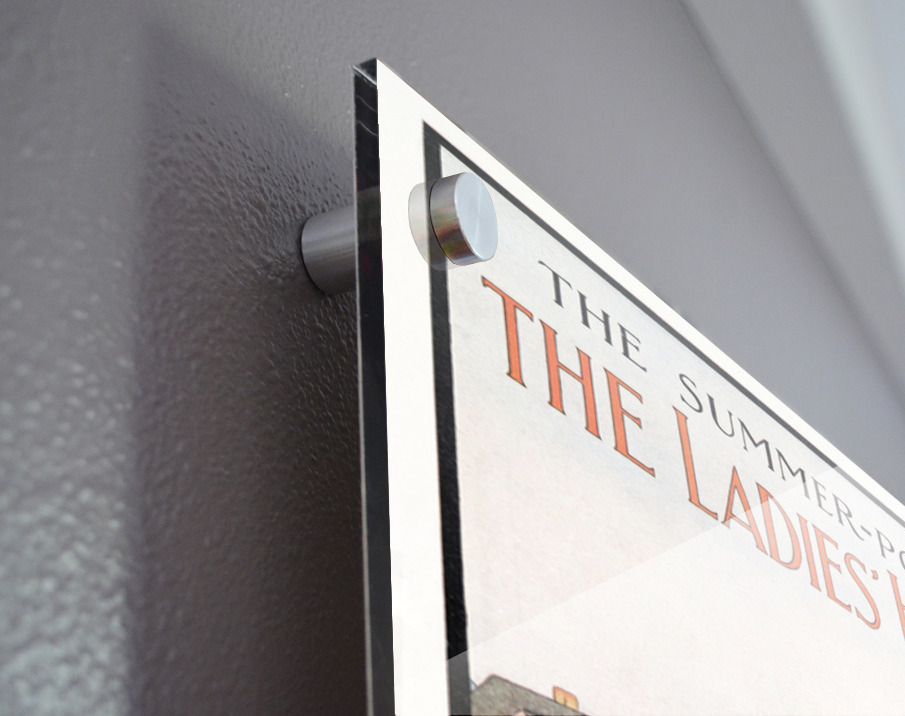 Printed to the edge - Ready to hang - provided with 4 premium polished aluminum stand off ( wall screws and mounting hardware provided ) We suggest a thicker 3/16" acrylic for any size over 42 inches to guarantee a straight acrylic, without curvature