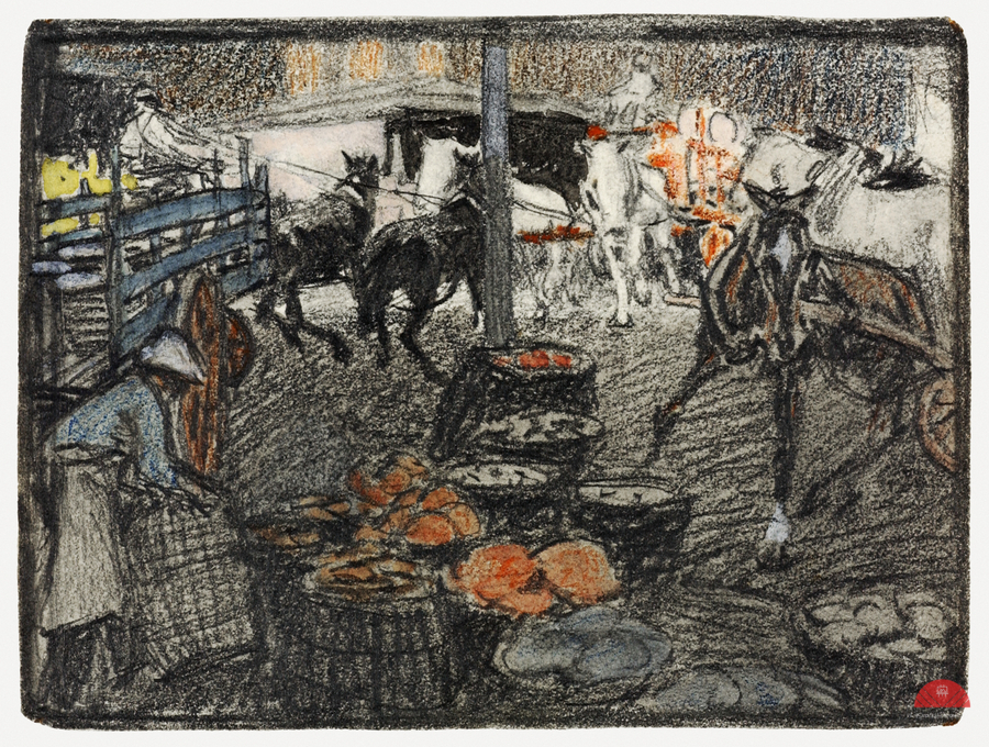 A busy scene of a market by Edward Penfield 1866-1925.
