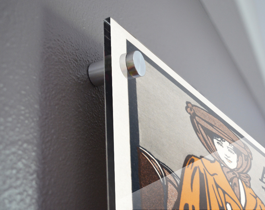 Printed to the edge - Ready to hang - provided with 4 premium polished aluminum stand off ( wall screws and mounting hardware provided ) We suggest a thicker 3/16" acrylic for any size over 42 inches to guarantee a straight acrylic, without curvature