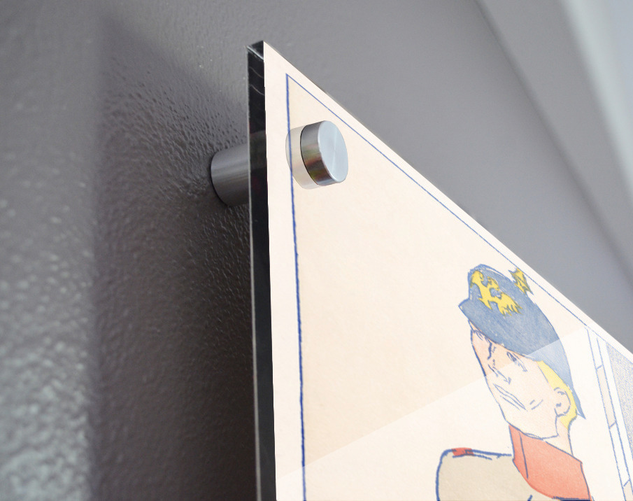 Printed to the edge - Ready to hang - provided with 4 premium polished aluminum stand off ( wall screws and mounting hardware provided ) We suggest a thicker 3/16" acrylic for any size over 42 inches to guarantee a straight acrylic, without curvature