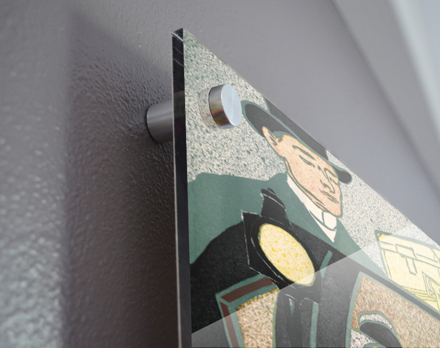 Printed to the edge - Ready to hang - provided with 4 premium polished aluminum stand off ( wall screws and mounting hardware provided ) We suggest a thicker 3/16" acrylic for any size over 42 inches to guarantee a straight acrylic, without curvature