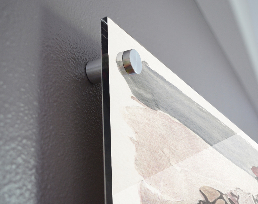 Printed to the edge - Ready to hang - provided with 4 premium polished aluminum stand off ( wall screws and mounting hardware provided ) We suggest a thicker 3/16" acrylic for any size over 42 inches to guarantee a straight acrylic, without curvature