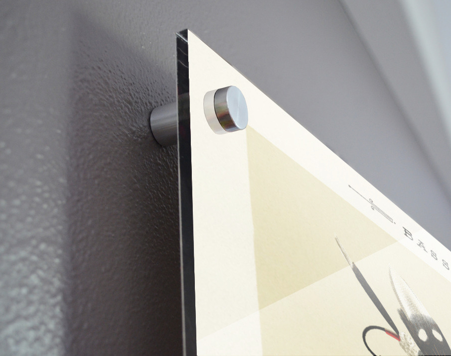 Printed to the edge - Ready to hang - provided with 4 premium polished aluminum stand off ( wall screws and mounting hardware provided ) We suggest a thicker 3/16" acrylic for any size over 42 inches to guarantee a straight acrylic, without curvature