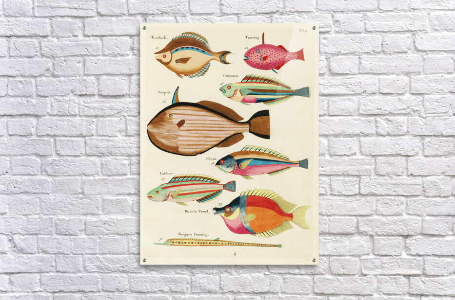 ABOUT THIS ARTWORK: COLOURFUL AND SURREAL ILLUSTRATIONS OF FISHES FOUND IN MOLUCCAS INDONESIA AND THE EAST INDIES BY LOUIS RENARD 1678 -1746 FROM HISTOIRE NATURELLE DES PLUS RARES CURIOSITEZ DE LA MER DES INDES 1754.