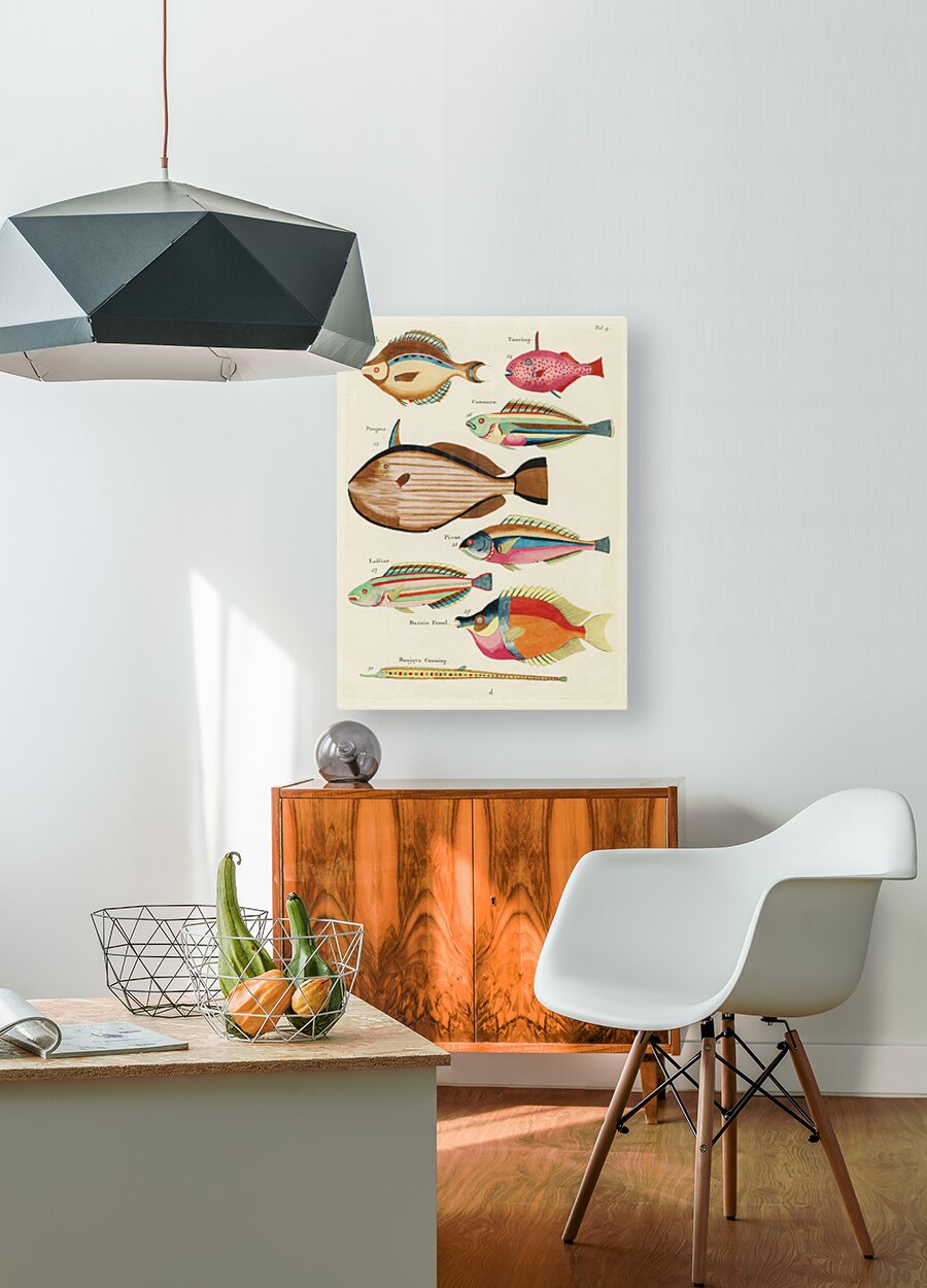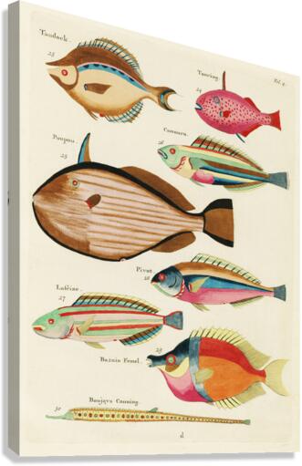 Colourful and surreal illustrations of fishes found in Moluccas Indonesia and the East Indies by Louis Renard 1678 -1746 from Histoire naturelle des plus rares curiositez de la mer des Indes 1754. Canvas print