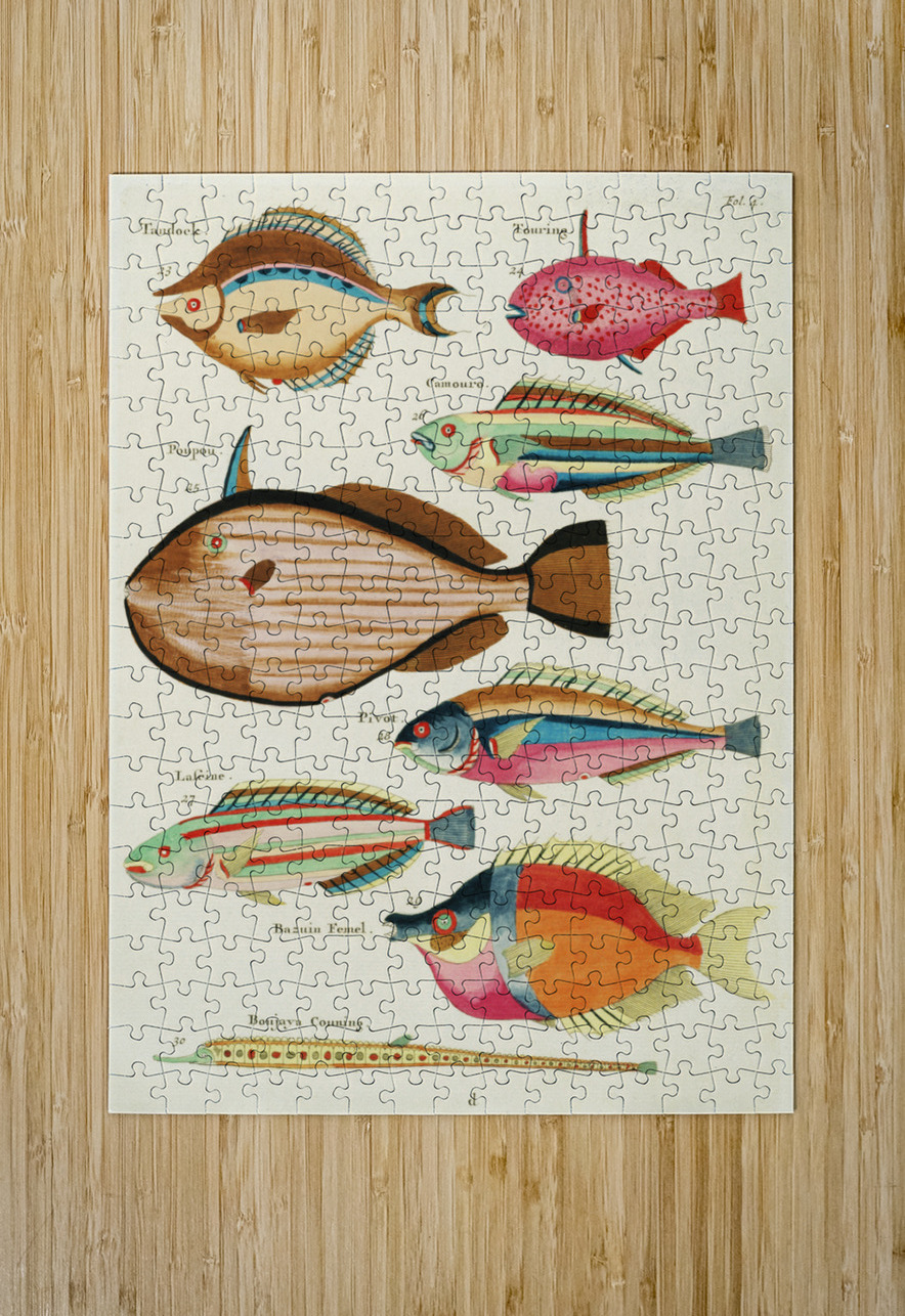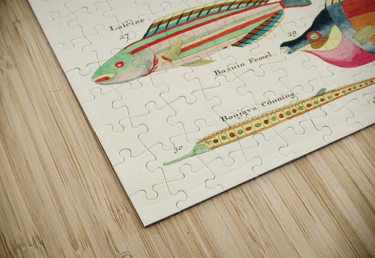 Colourful and surreal illustrations of fishes found in Moluccas Indonesia and the East Indies by Louis Renard 1678 -1746 from Histoire naturelle des plus rares curiositez de la mer des Indes 1754. IStockHistory com Puzzle