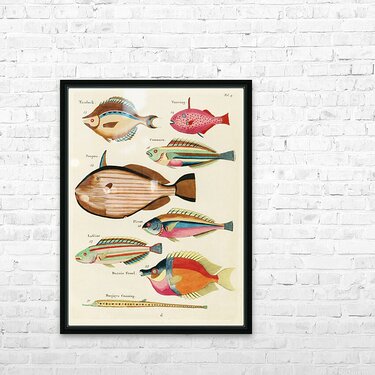 Colourful and surreal illustrations of fishes found in Moluccas Indonesia and the East Indies by Louis Renard 1678 -1746 from Histoire naturelle des plus rares curiositez de la mer des Indes 1754. Picture Frame Printing