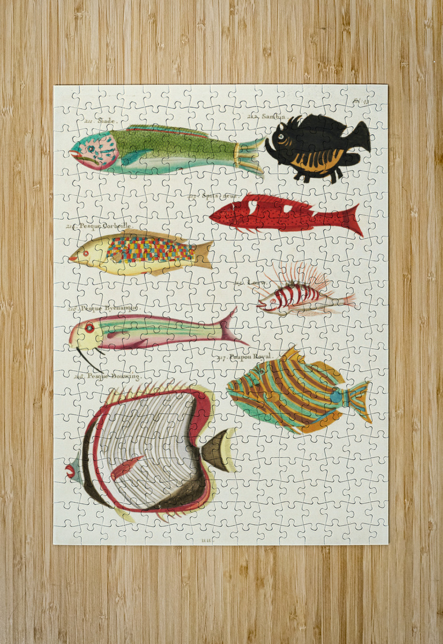 Colourful and surreal illustrations of fishes found in Moluccas Indonesia and the East Indies by Louis Renard 1678 -1746 from Histoire naturelle des plus rares curiositez de la mer des Indes 1754. IStockHistory com Puzzle