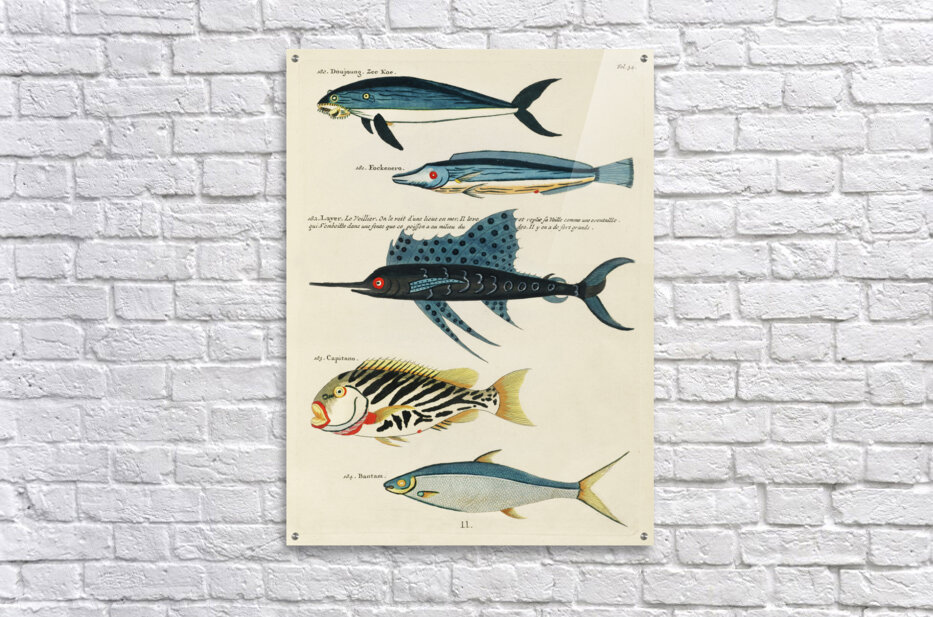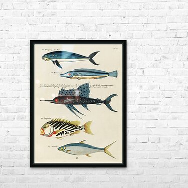 Get this artwork "Colourful and surreal illustrations of fishes found in Moluccas Indonesia and the East Indies by Louis Renard 1678 -1746 from Histoire naturelle des plus rares curiositez de la mer des Indes 1754." in a framed print.