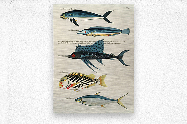 ABOUT THIS ARTWORK: COLOURFUL AND SURREAL ILLUSTRATIONS OF FISHES FOUND IN MOLUCCAS INDONESIA AND THE EAST INDIES BY LOUIS RENARD 1678 -1746 FROM HISTOIRE NATURELLE DES PLUS RARES CURIOSITEZ DE LA MER DES INDES 1754.