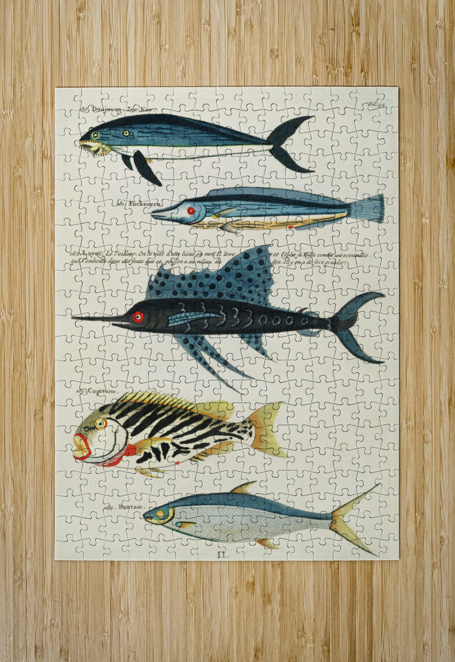 Colourful and surreal illustrations of fishes found in Moluccas Indonesia and the East Indies by Louis Renard 1678 -1746 from Histoire naturelle des plus rares curiositez de la mer des Indes 1754. IStockHistory com Puzzle printing