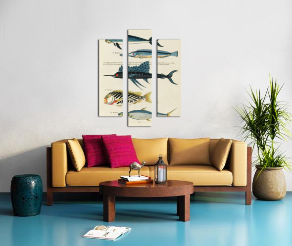 Colourful and surreal illustrations of fishes found in Moluccas Indonesia and the East Indies by Louis Renard 1678 -1746 from Histoire naturelle des plus rares curiositez de la mer des Indes 1754. Canvas print