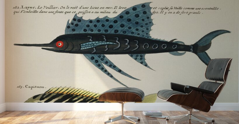 ABOUT THIS ARTWORK: COLOURFUL AND SURREAL ILLUSTRATIONS OF FISHES FOUND IN MOLUCCAS INDONESIA AND THE EAST INDIES BY LOUIS RENARD 1678 -1746 FROM HISTOIRE NATURELLE DES PLUS RARES CURIOSITEZ DE LA MER DES INDES 1754.