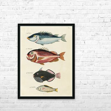 Get this artwork "Colourful and surreal illustrations of fishes found in Moluccas Indonesia and the East Indies by Louis Renard 1678 -1746 from Histoire naturelle des plus rares curiositez de la mer des Indes 1754." in a framed print.