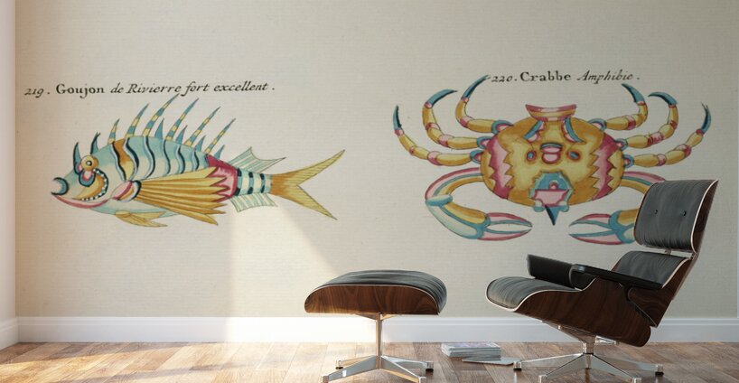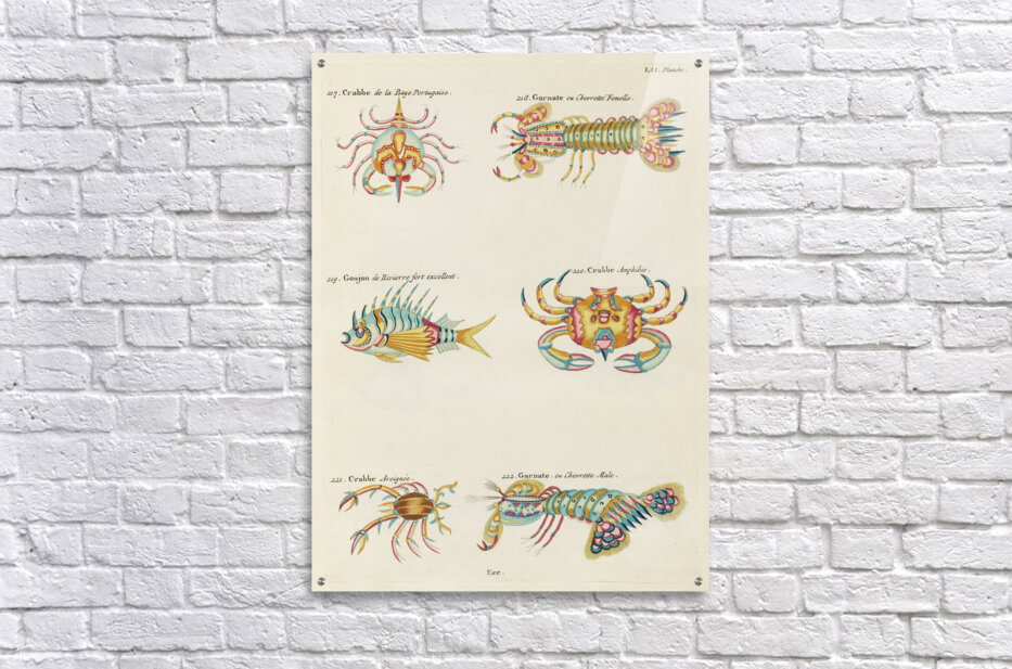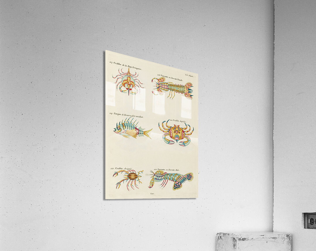 ABOUT THIS ARTWORK: COLOURFUL AND SURREAL ILLUSTRATIONS OF CRABS AND LOBSTER FOUND IN MOLUCCAS INDONESIA AND THE EAST INDIES BY LOUIS RENARD 1678 -1746 FROM HISTOIRE NATURELLE DES PLUS RARES CURIOSITEZ DE LA MER DES INDES 1754.