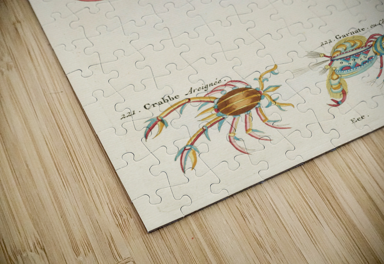Colourful and surreal illustrations of crabs and lobster found in Moluccas Indonesia and the East Indies by Louis Renard 1678 -1746 from Histoire naturelle des plus rares curiositez de la mer des Indes 1754. IStockHistory com Puzzle printing