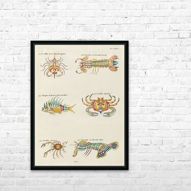 Colourful and surreal illustrations of crabs and lobster found in Moluccas Indonesia and the East Indies by Louis Renard 1678 -1746 from Histoire naturelle des plus rares curiositez de la mer des Indes 1754. Picture Frame Printing