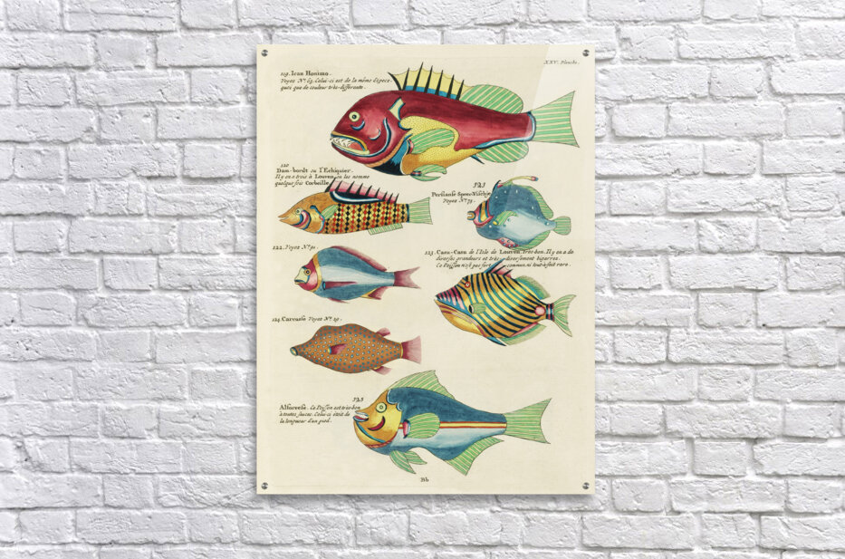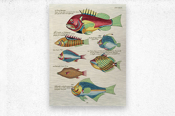 ABOUT THIS ARTWORK: COLOURFUL AND SURREAL ILLUSTRATIONS OF FISHES FOUND IN MOLUCCAS INDONESIA AND THE EAST INDIES BY LOUIS RENARD 1678 -1746 FROM HISTOIRE NATURELLE DES PLUS RARES CURIOSITEZ DE LA MER DES INDES 1754.