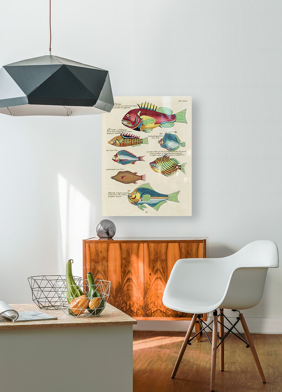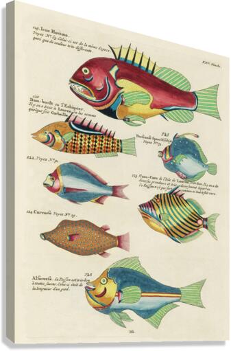 Colourful and surreal illustrations of fishes found in Moluccas Indonesia and the East Indies by Louis Renard 1678 -1746 from Histoire naturelle des plus rares curiositez de la mer des Indes 1754. Canvas print