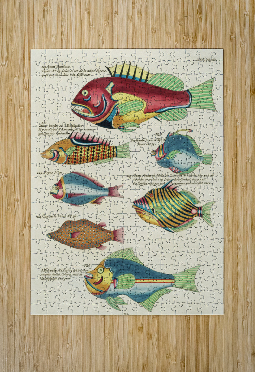 Colourful and surreal illustrations of fishes found in Moluccas Indonesia and the East Indies by Louis Renard 1678 -1746 from Histoire naturelle des plus rares curiositez de la mer des Indes 1754. IStockHistory com Puzzle printing