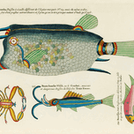 Colourful and surreal illustrations of fishes and crab found in Moluccas Indonesia and the East Indies by Louis Renard 1678 -1746 from Histoire nature...[+]