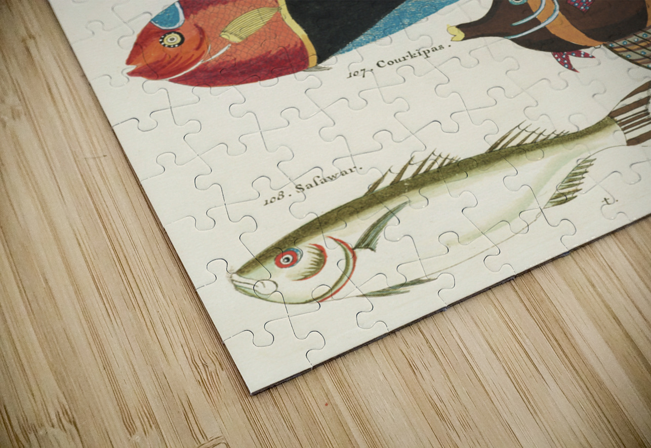 Colourful and surreal illustrations of fishes found in Moluccas Indonesia and the East Indies by Louis Renard 1678 -1746 from Histoire naturelle des plus rares curiositez de la mer des Indes 1754. IStockHistory com Puzzle