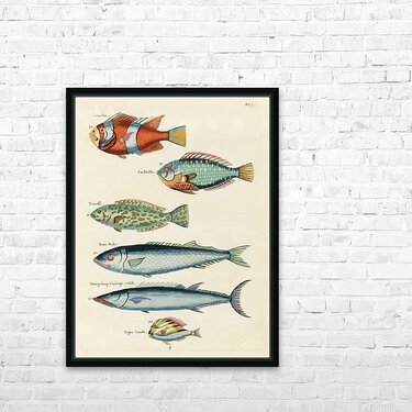 Get this artwork "Colourful and surreal illustrations of fishes found in Moluccas Indonesia and the East Indies by Louis Renard 1678 -1746 from Histoire naturelle des plus rares curiositez de la mer des Indes 1754." in a framed print.