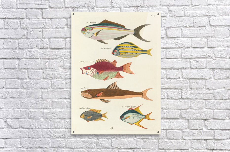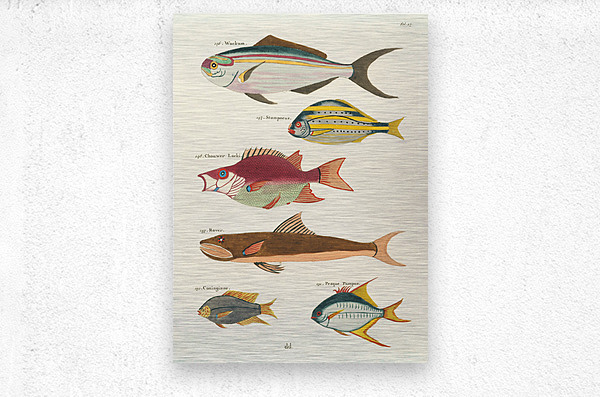 ABOUT THIS ARTWORK: COLOURFUL AND SURREAL ILLUSTRATIONS OF FISHES FOUND IN MOLUCCAS INDONESIA AND THE EAST INDIES BY LOUIS RENARD 1678 -1746 FROM HISTOIRE NATURELLE DES PLUS RARES CURIOSITEZ DE LA MER DES INDES 1754.